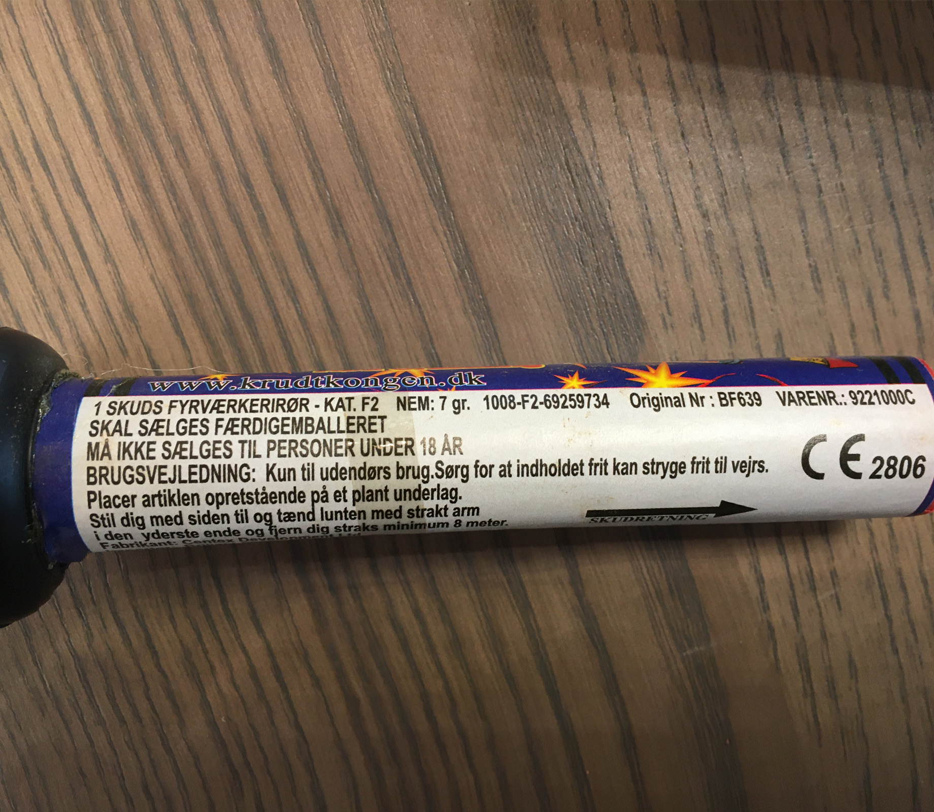 Artiklen 'Thunder King Green Crackling' med CE registreringsnummer 1008-F2-69259734, artikelnummer 9221000c og batch nummer 01-9924000-19 må ikke sælges og skal trækkes tilbage fra markedet.